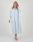 Introducing our new Josephine Nightdress. A full-length, loose fitting nightdress in our new Denbury Check Light Blue design featuring long sleeves and beautiful button detail. Warm, super-soft 100% brushed cotton makes this nightdress perfect for the cooler months - guaranteed to keep you cosy.