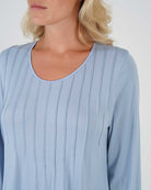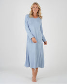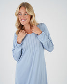Women's French Pleat Long Sleeved Jersey Nightdress - Powder Blue