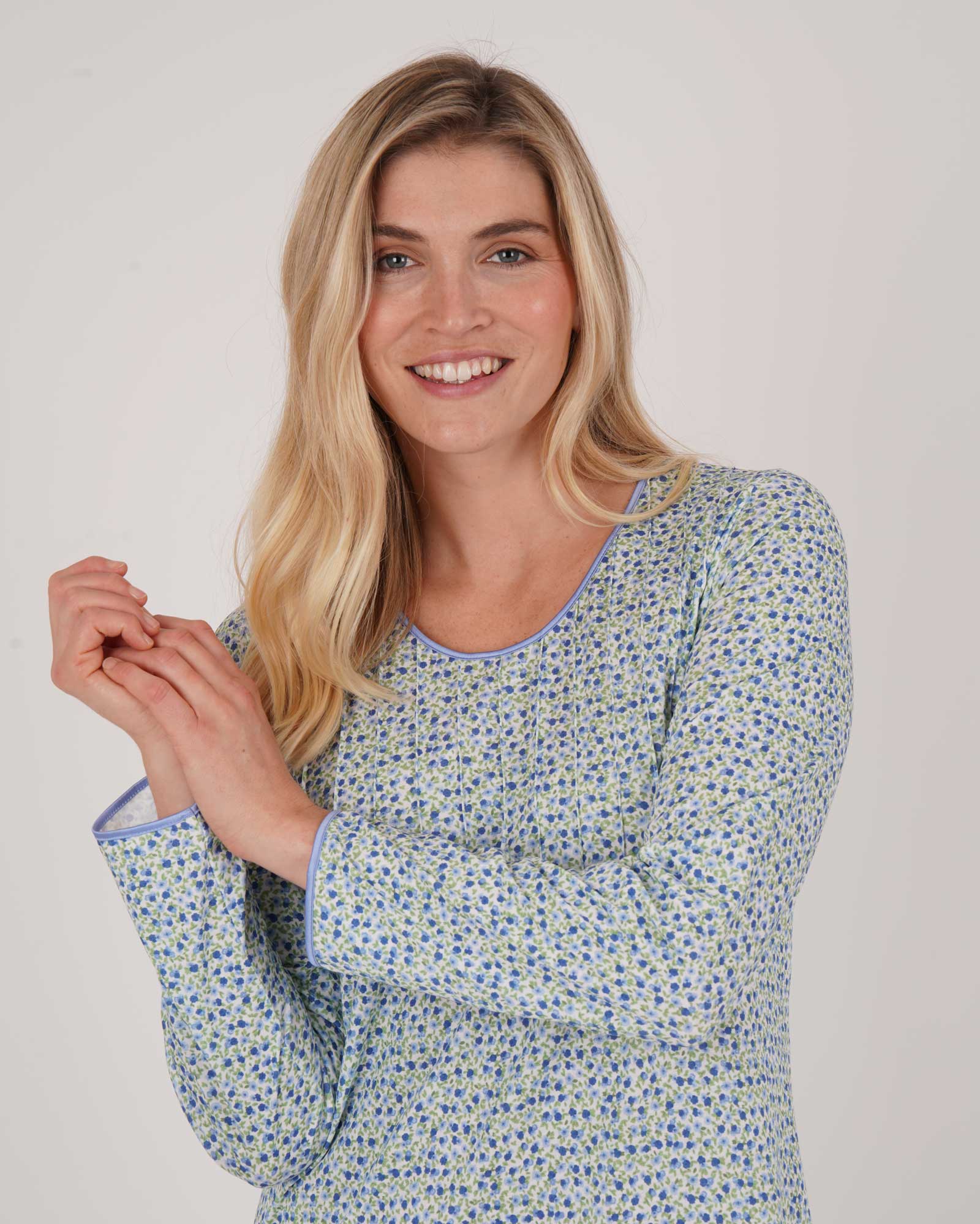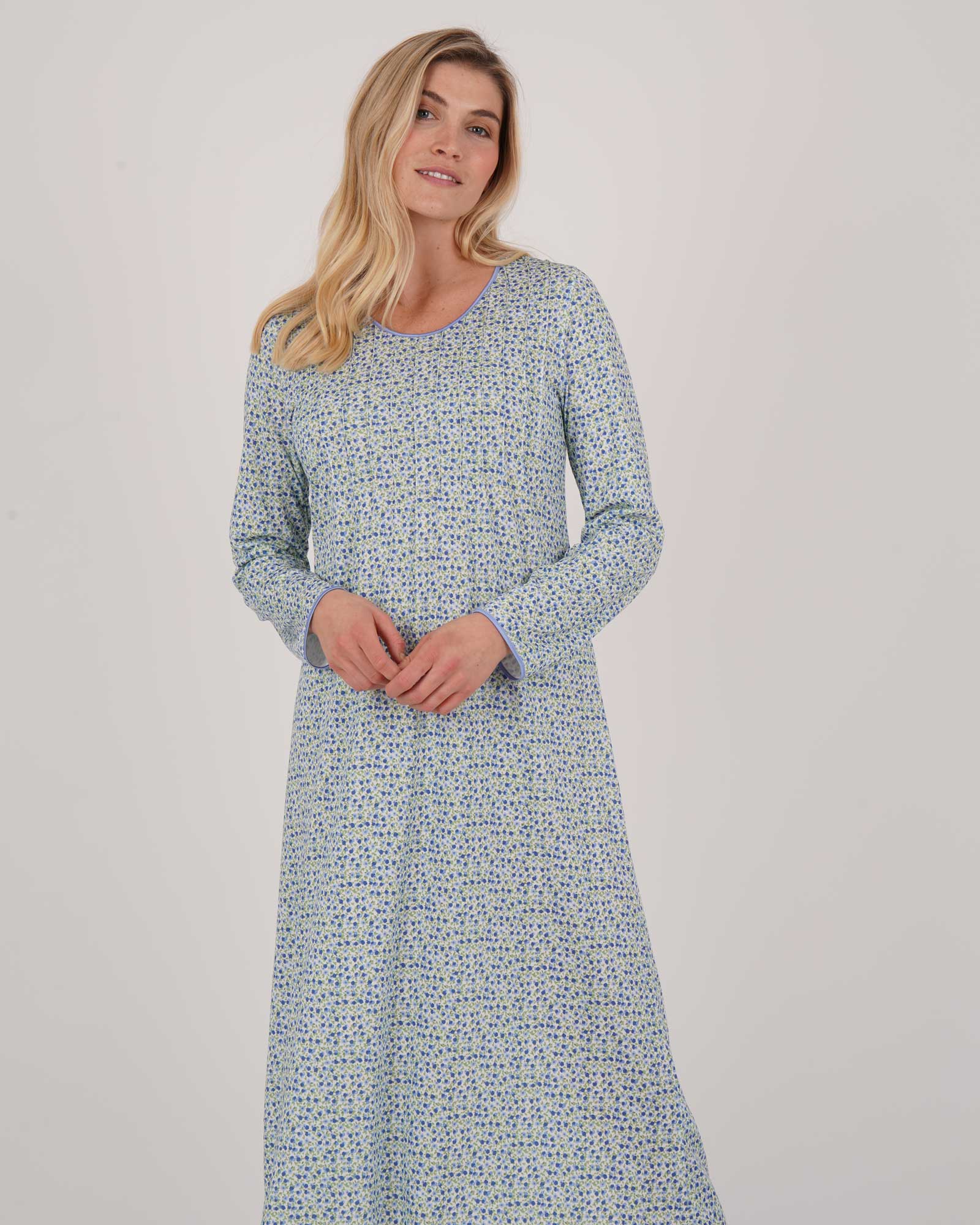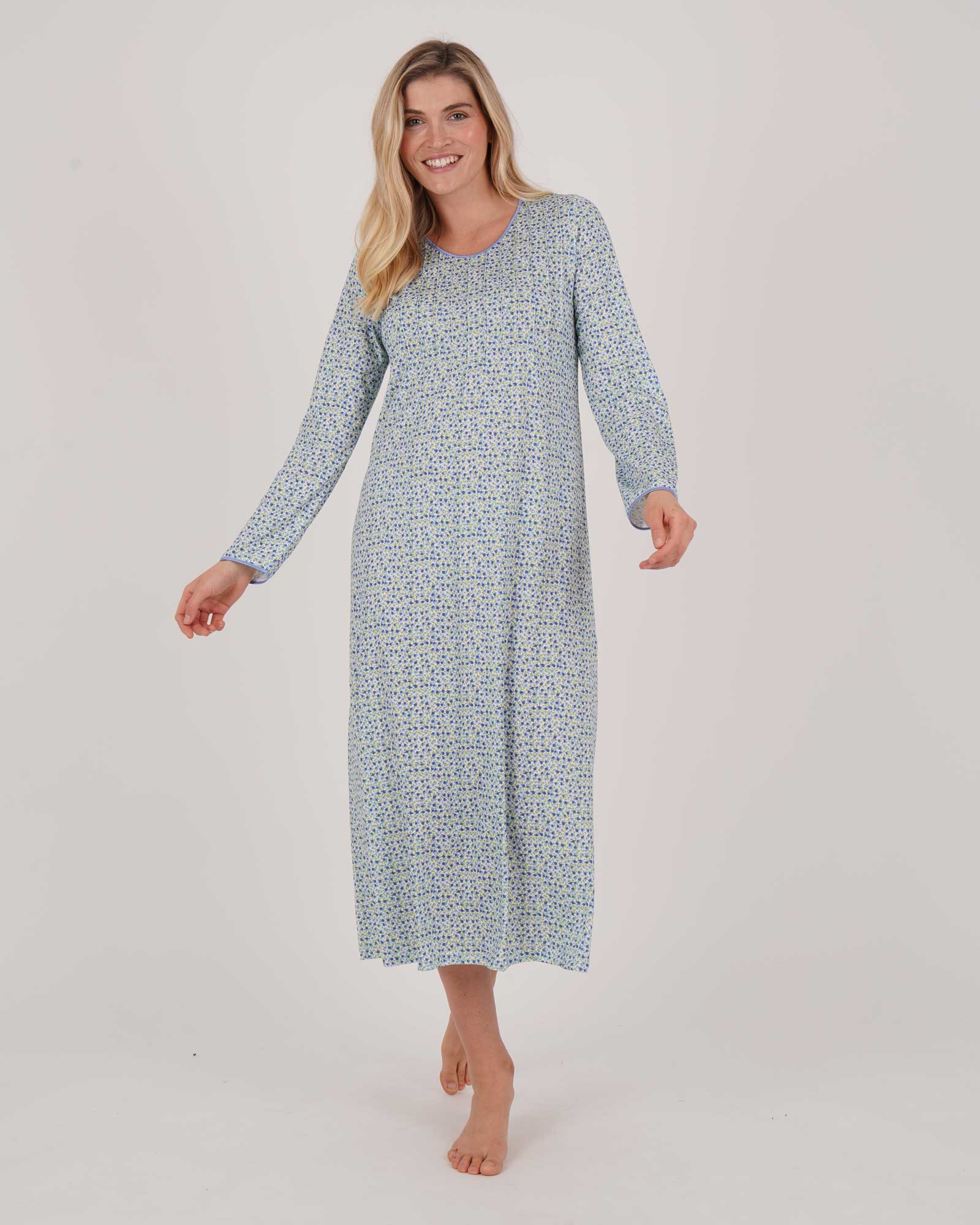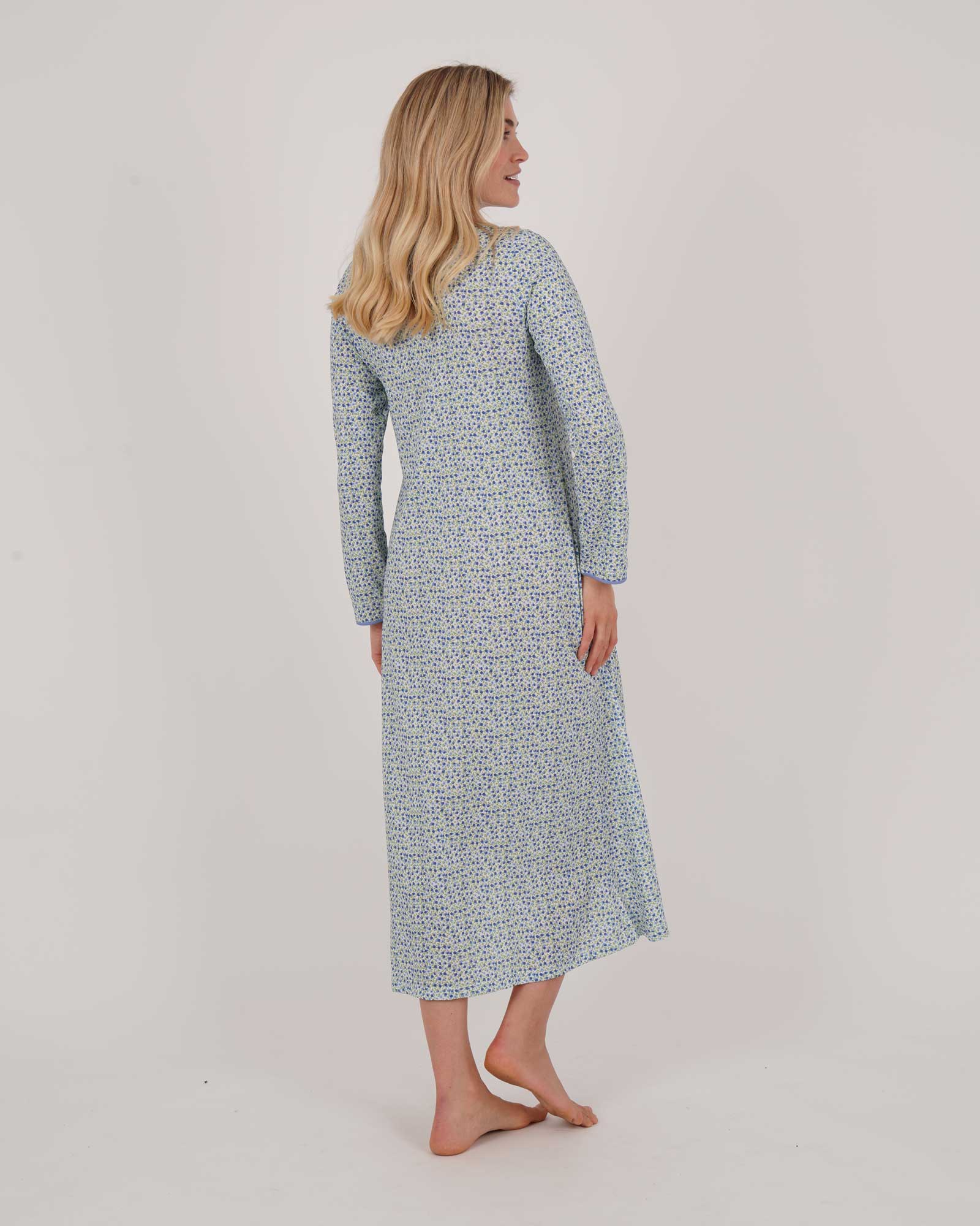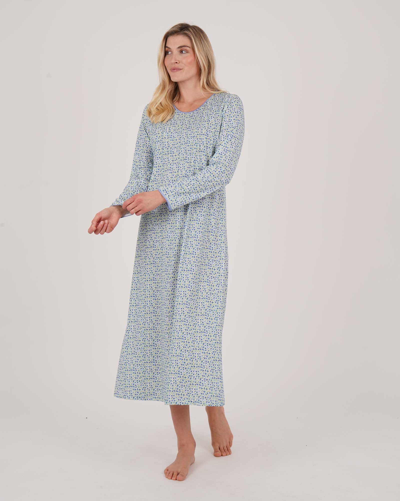 Women's French Pleat Long Sleeved Jersey Nightdress - Wistow Ditsy Floral