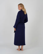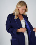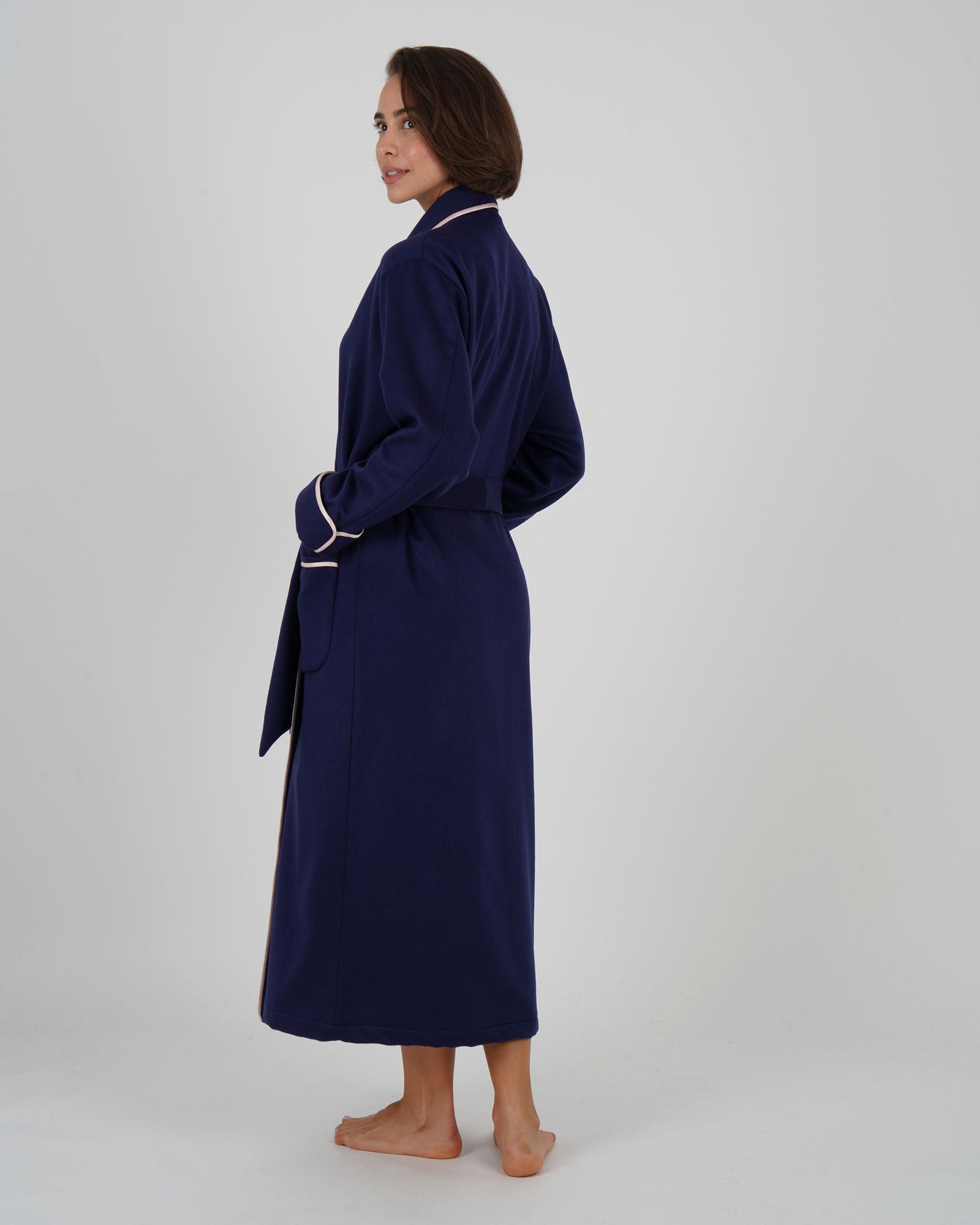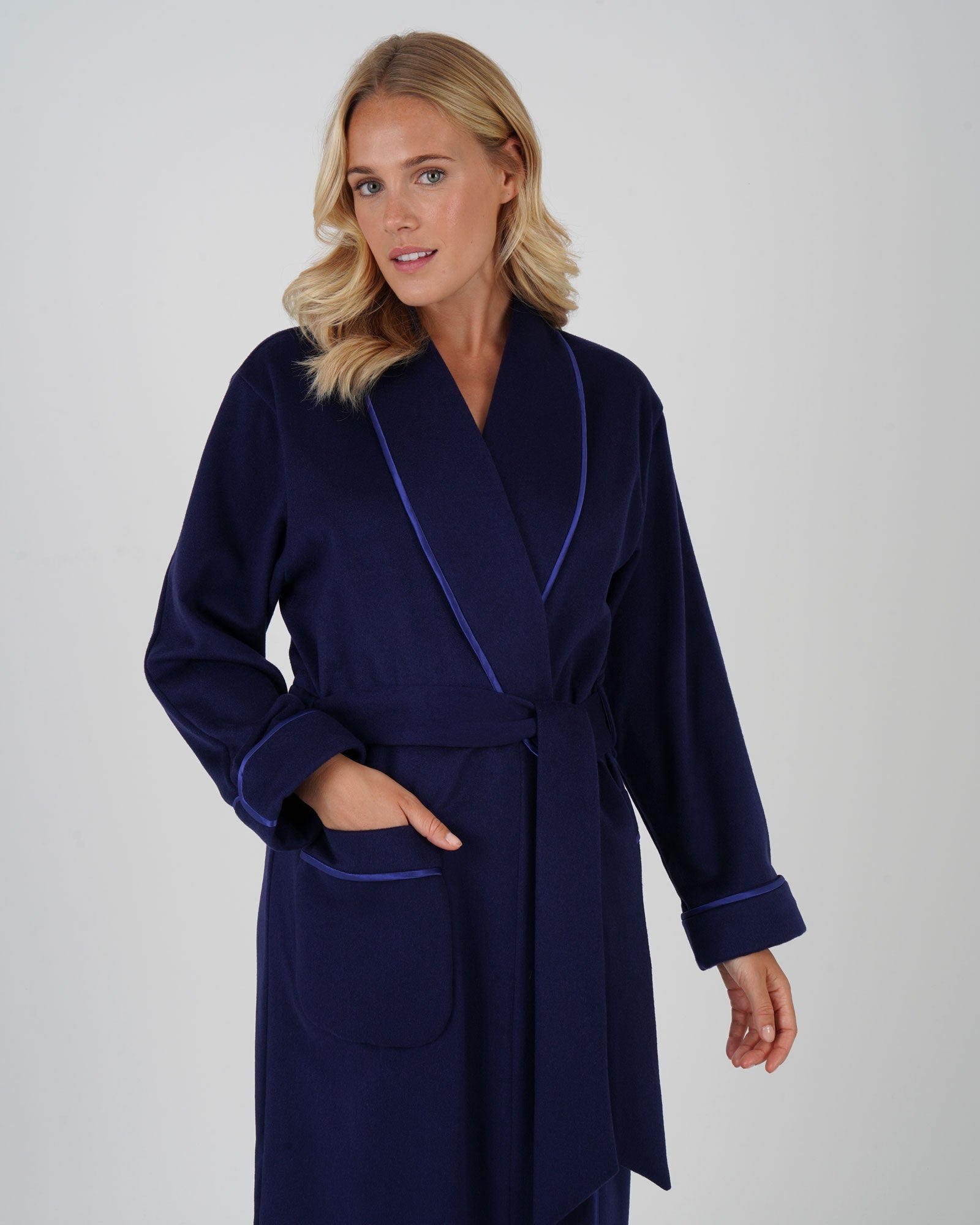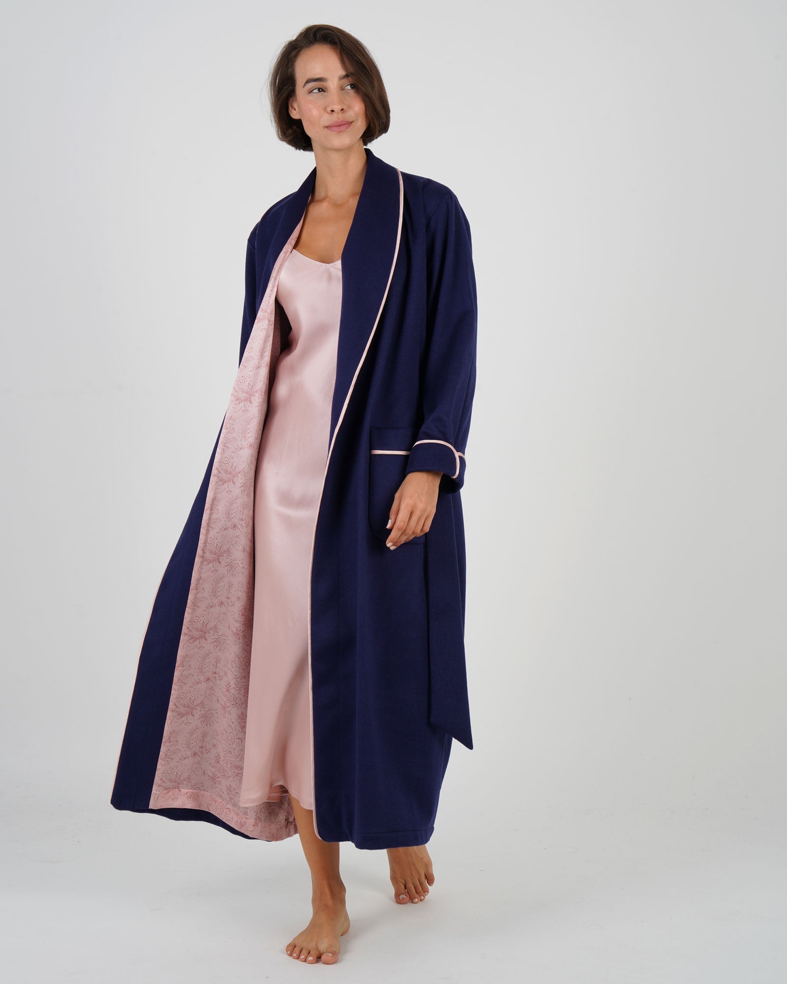 Women's Silk-Lined Cashmere Robe - Navy with Marlin Silk Lining