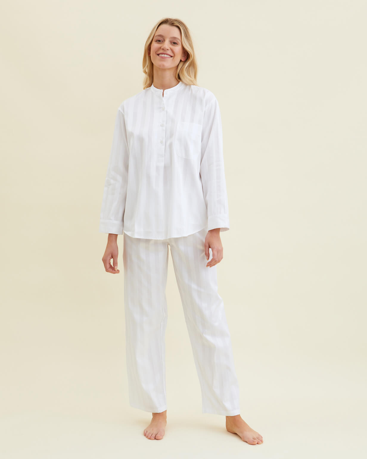 Our Satin Stripe Grandad Pyjamas are an elegant addition to your Spring Summer wardrobe.