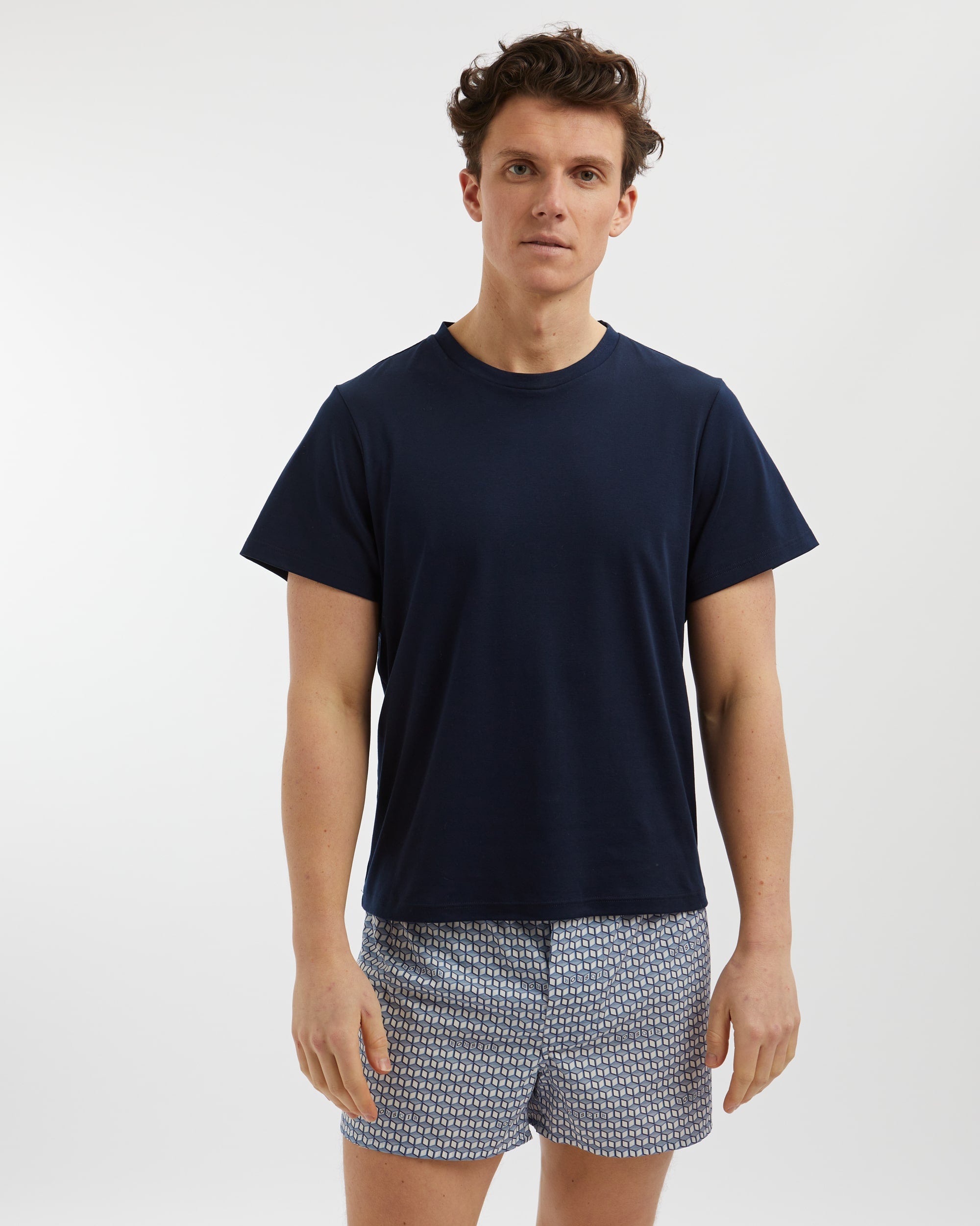Our men's boxer shorts are crafted from 100% cotton. Lightweight and breathable, they feature an elasticated waist, button fastening and are sewn with a three-panel seat and smooth seams for extra comfort.