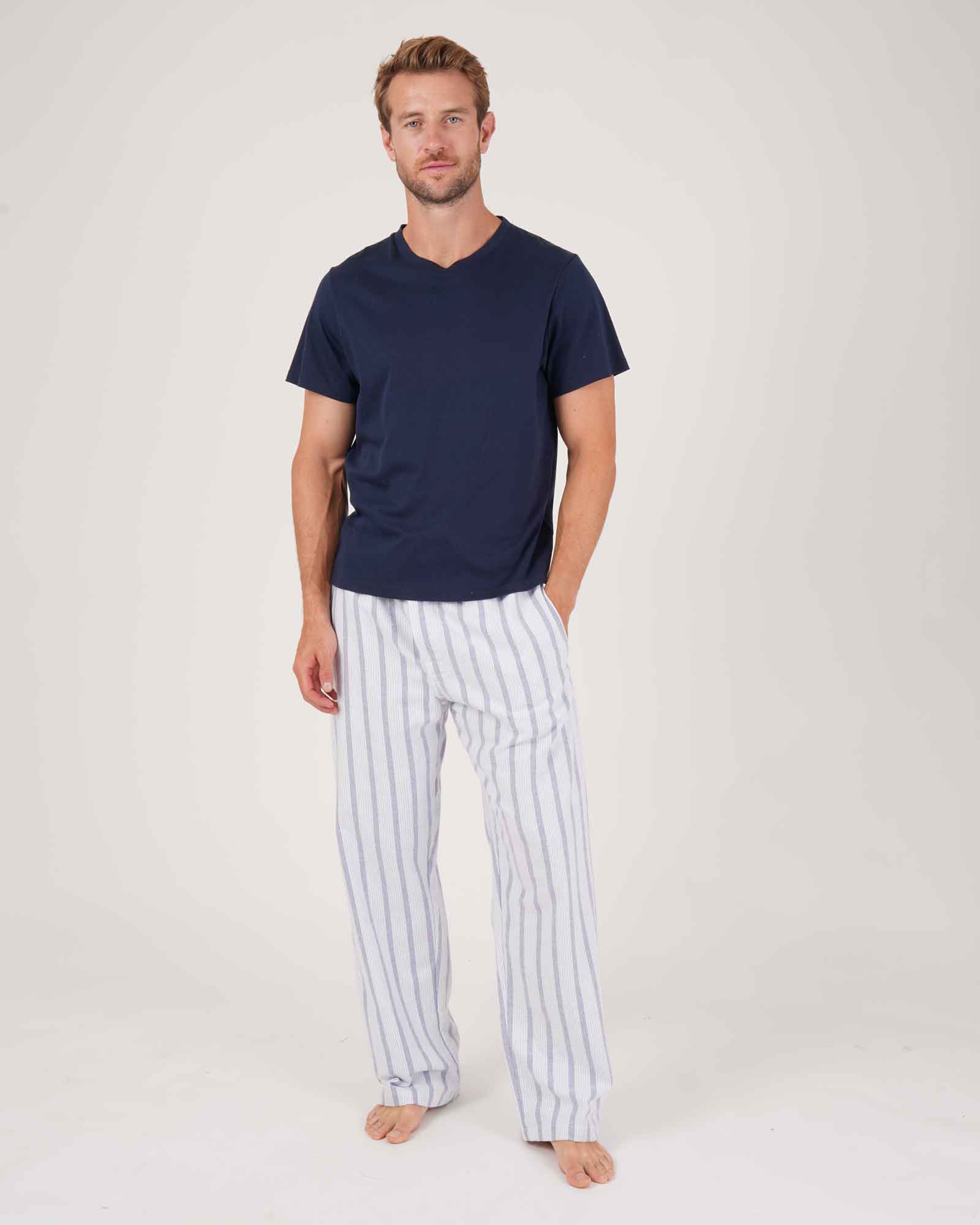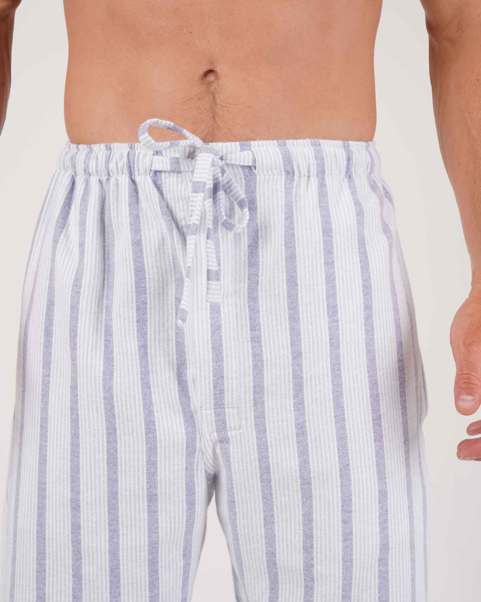 Perfect for relaxing evenings and lazy mornings, these classic stripe pyjama trousers are made from super-soft brushed cotton. Stylish and comfortable, they have a self fabric drawstring, elasticated waist and concealed button fly and pockets.
