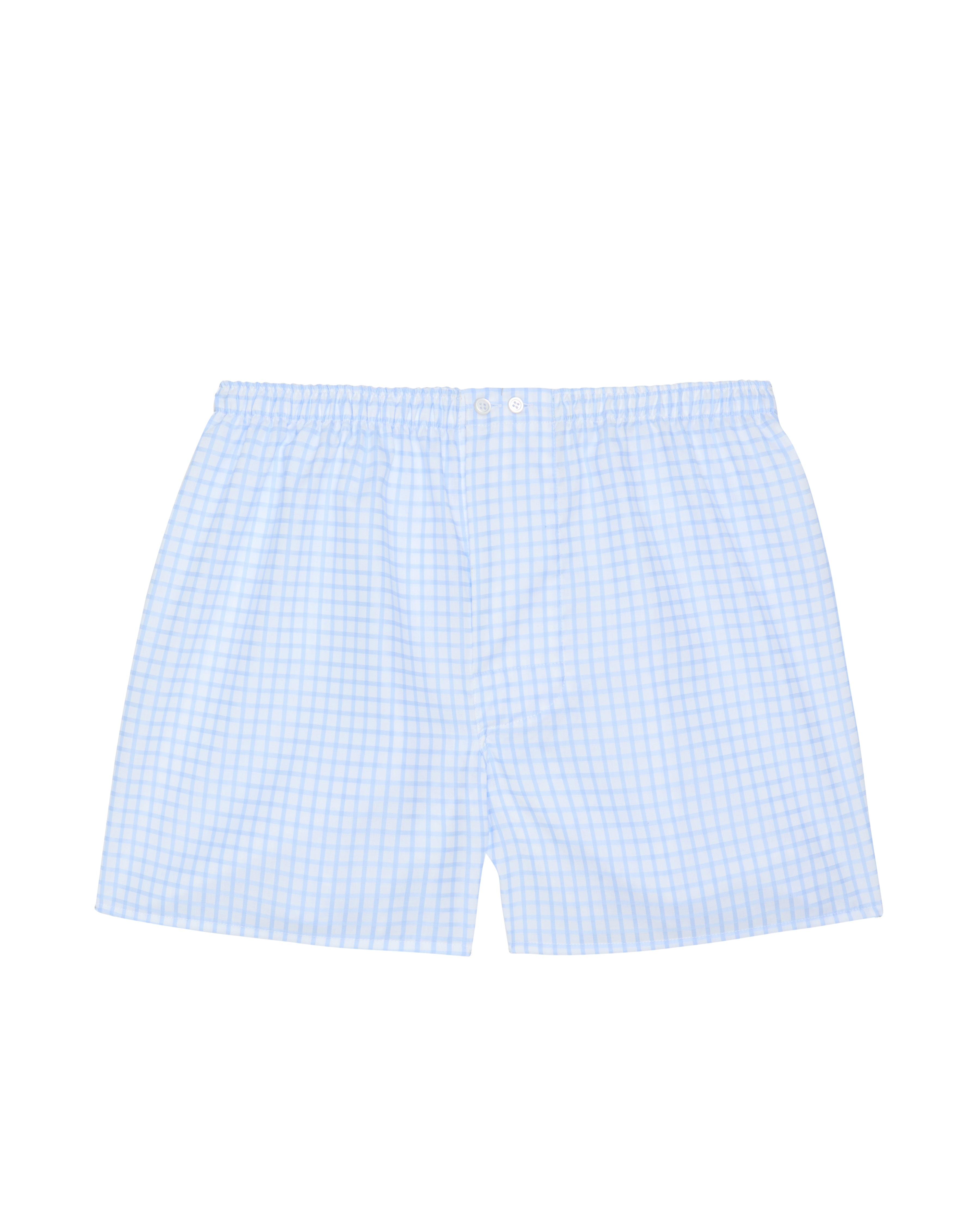 These boxer shorts in Exton Light Blue Check are our take on the classic blue check, and made from luxurious two-fold cotton. This exceptionally smooth fabric is created by using extra fine yarns which are spun together, producing a super fine weave. Cool to wear, the boxer shorts are sewn with a three-panel seat and feature extra smooth seams for comfort.