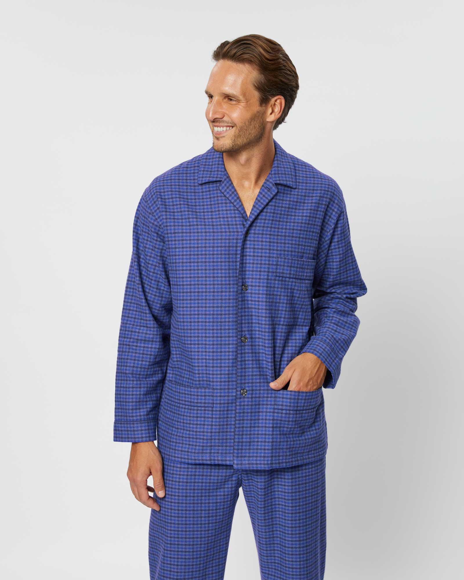 Our men's Winsford Check pyjamas are crafted from the finest quality brushed cotton, the perfect sleepwear for relaxing evenings and laidback mornings.