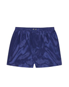 A luxurious take on our classic Bonsoir boxer shorts, made for exquisite navy silk satin. Our design features a comfortable, fully elasticated waistband with a traditional button-fastening at the front. Cut in a classic fit, the shorts have a distinctive back panel at the rear instead of an uncomfortable central back seam. In addition, the seams in our boxers are flat felled to avoid rough edges. Flat felled seams are a very nifty invention which requires time and attention to detail. For this finish, the seam allowances are double-folded and twice-sewn, encasing the cut edges of the cloth and ensuring a smooth inside of the garment.