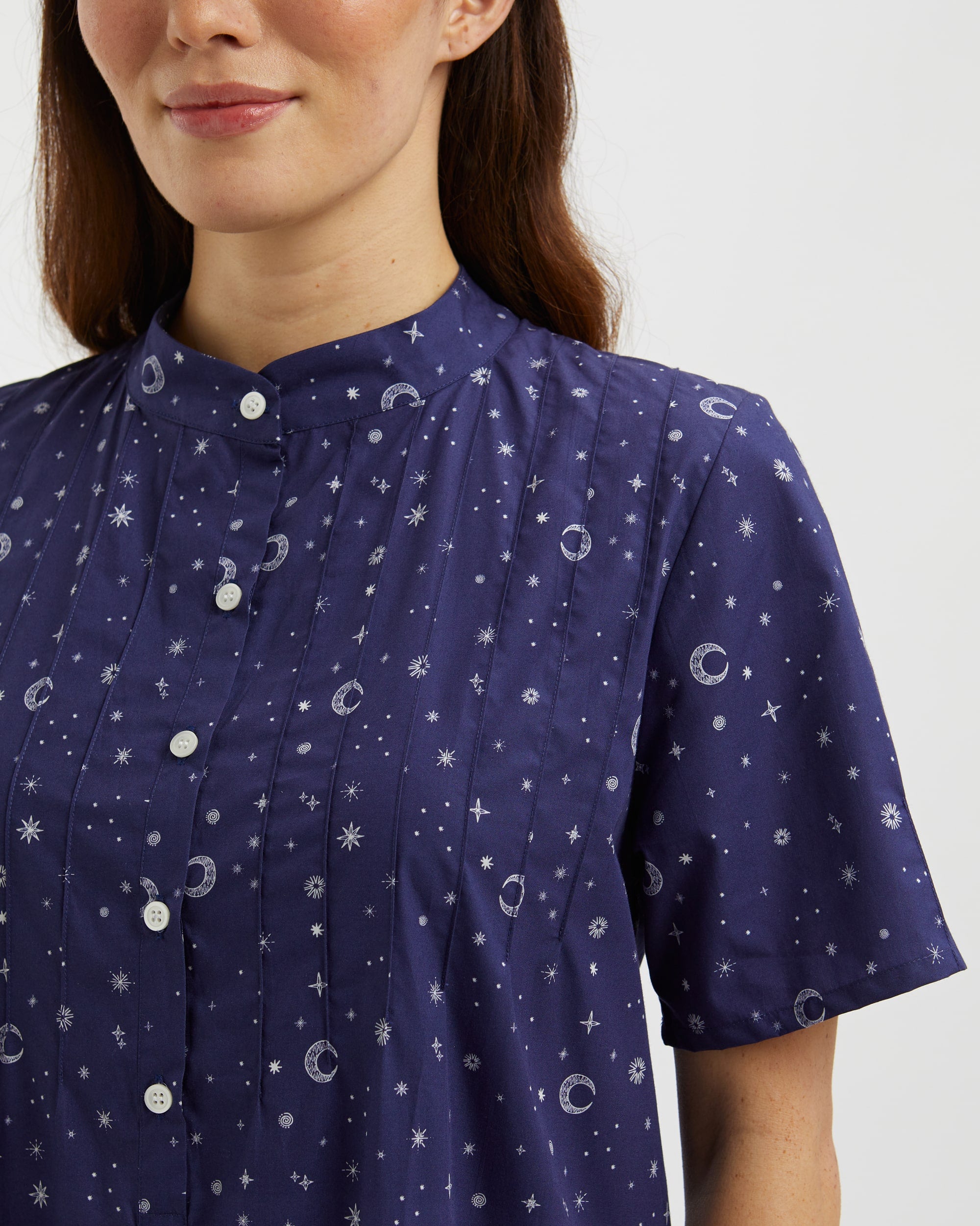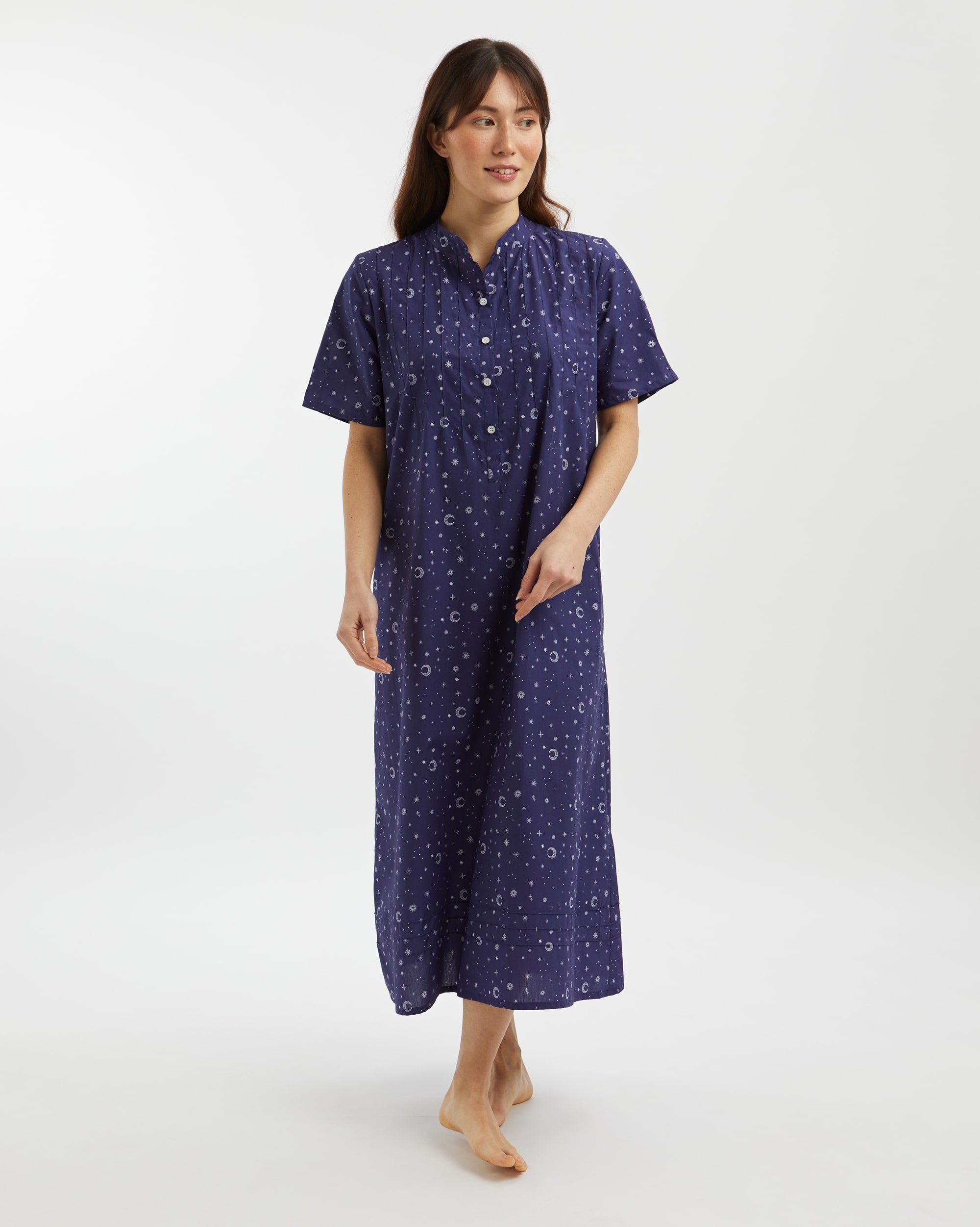 Women's Victoria Short Sleeve Cotton Nightdress - Celestial Print