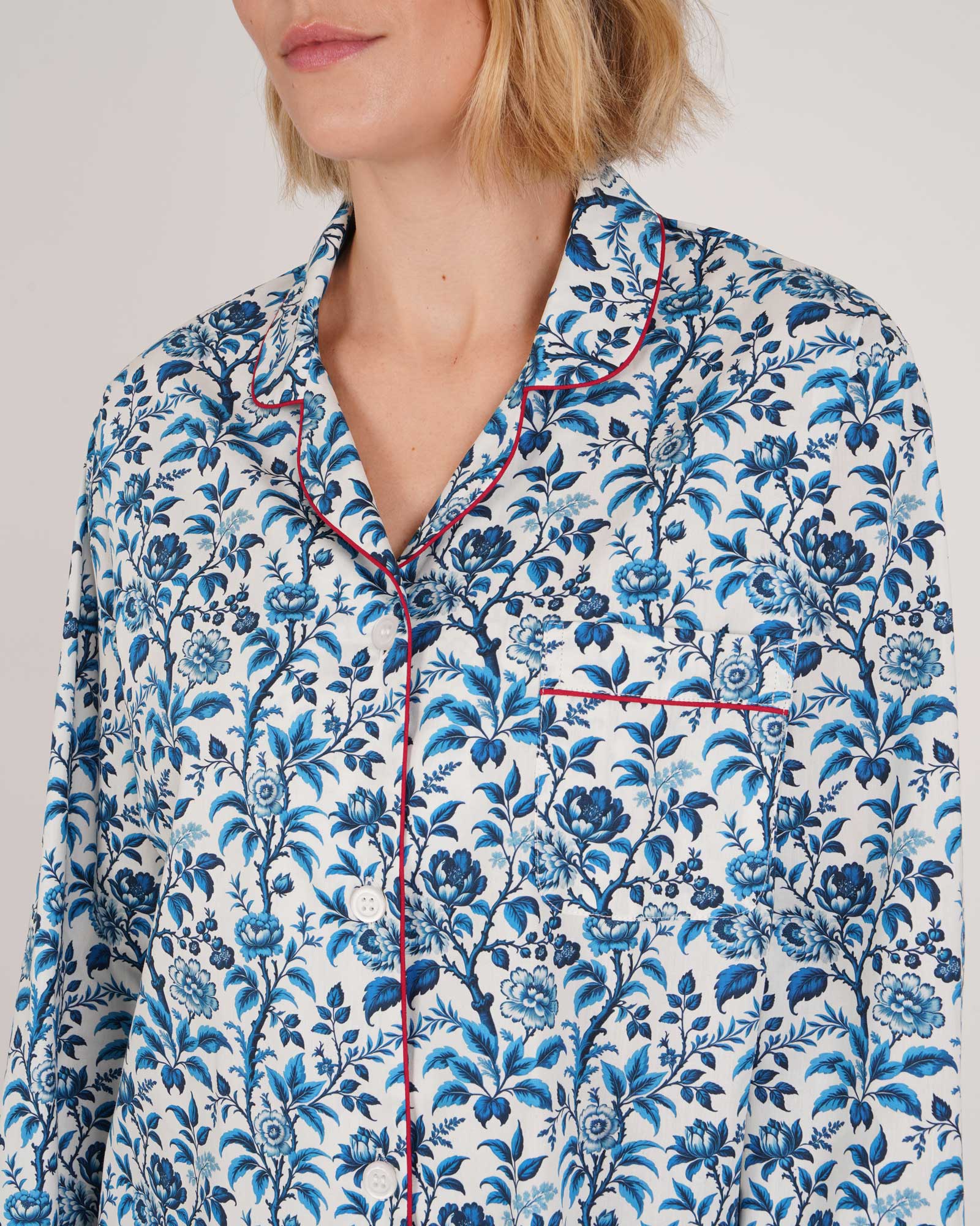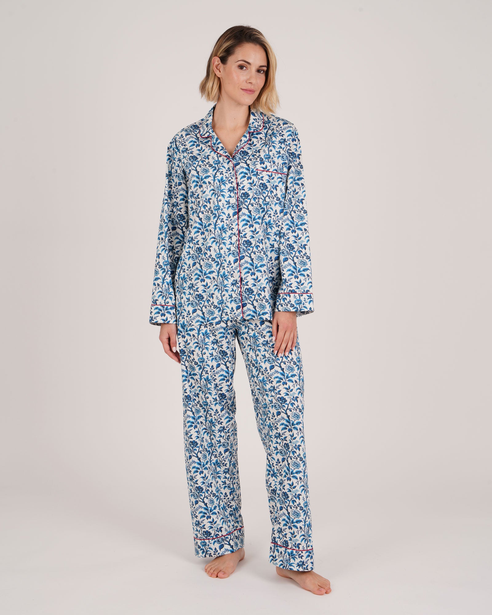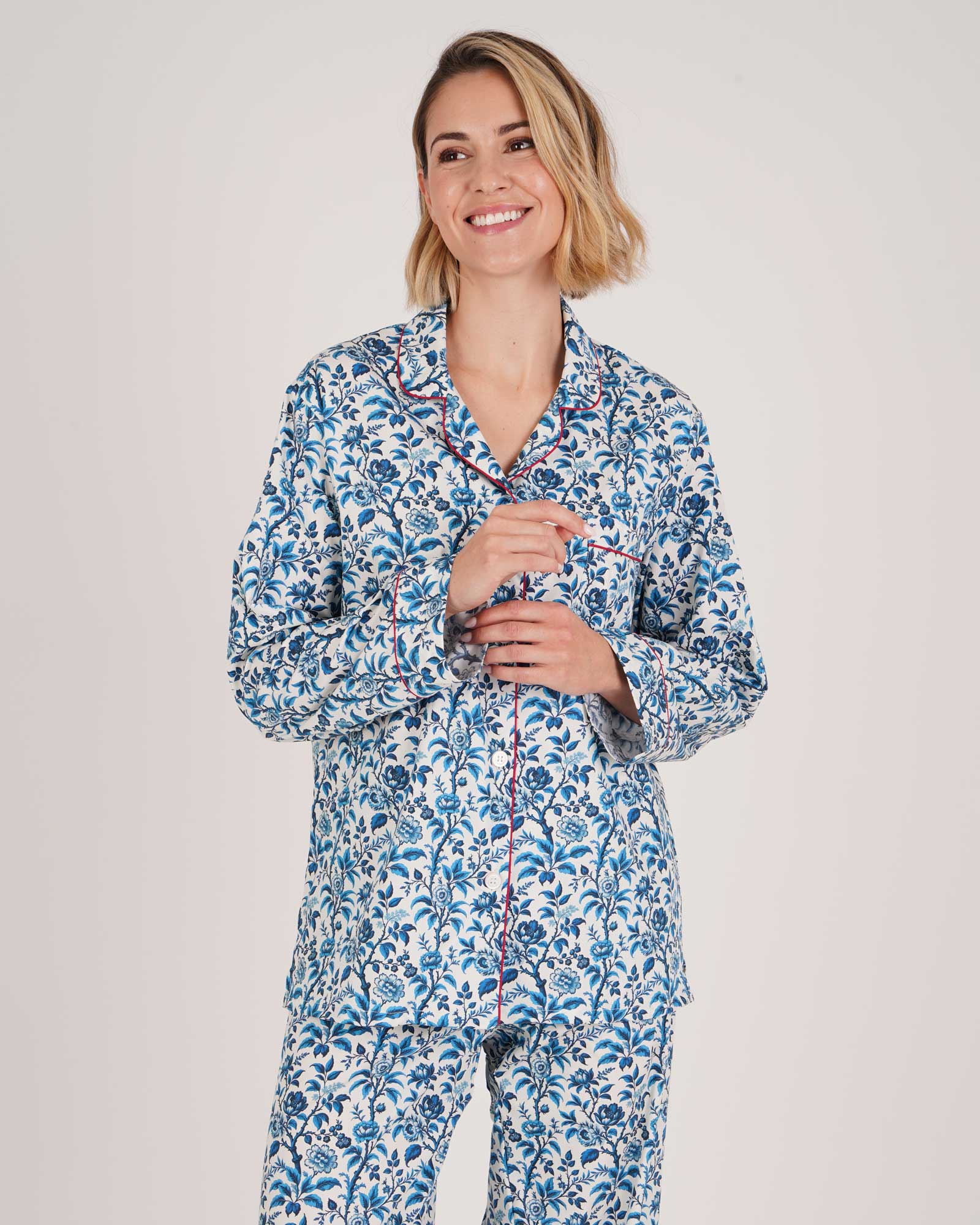 Our classic cotton pyjamas are elevated by this season's beautiful Hutton Tapestry Print. Cut from a super soft, lightweight 100% cotton, our women’s long sleeve pyjamas are a stylish sleepwear addition. With comfort at their core, our pyjamas have a relaxed fit and feature a half elastic, half self-fabric drawstring waist.