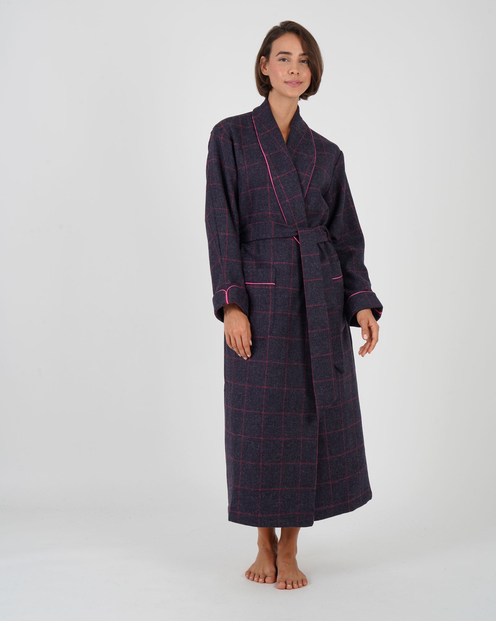 Our women's silk-lined wool robe in Kepwick Check is a luxurious loungewear addition to your winter wardrobe. Crafted from responsibly sourced lambswool in the UK, each garment is handmade by our expert seamstresses in Somerset.
