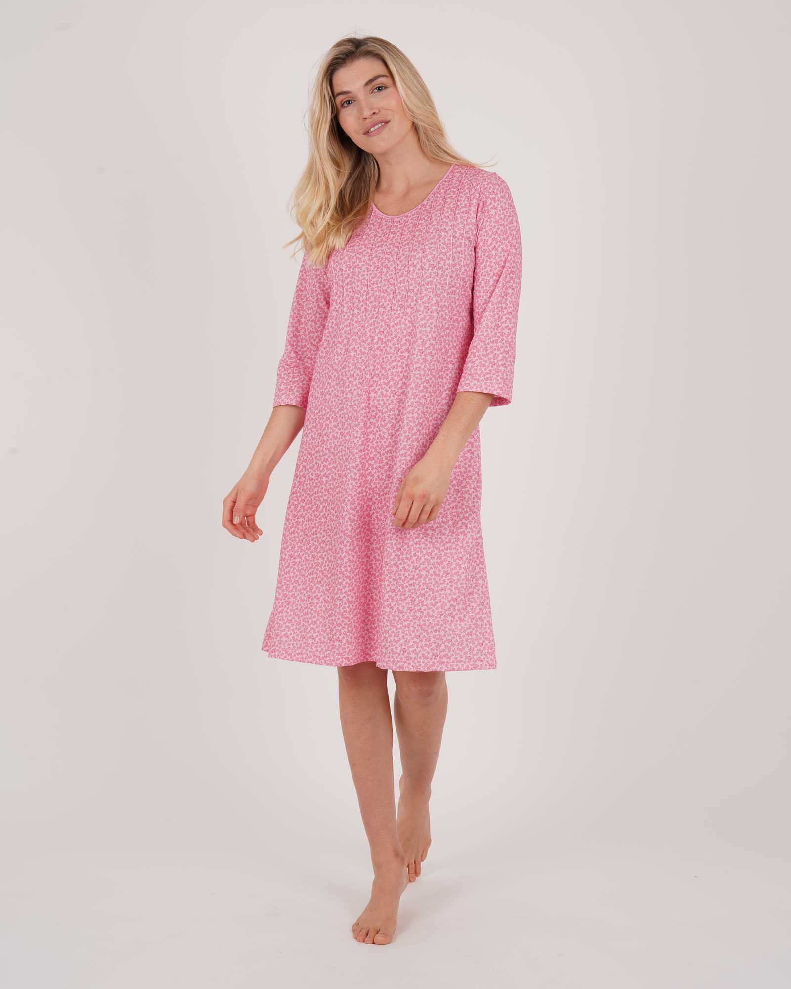 Women's French Pleat Midi Jersey Nightdress - Dinley Ditsy Pink