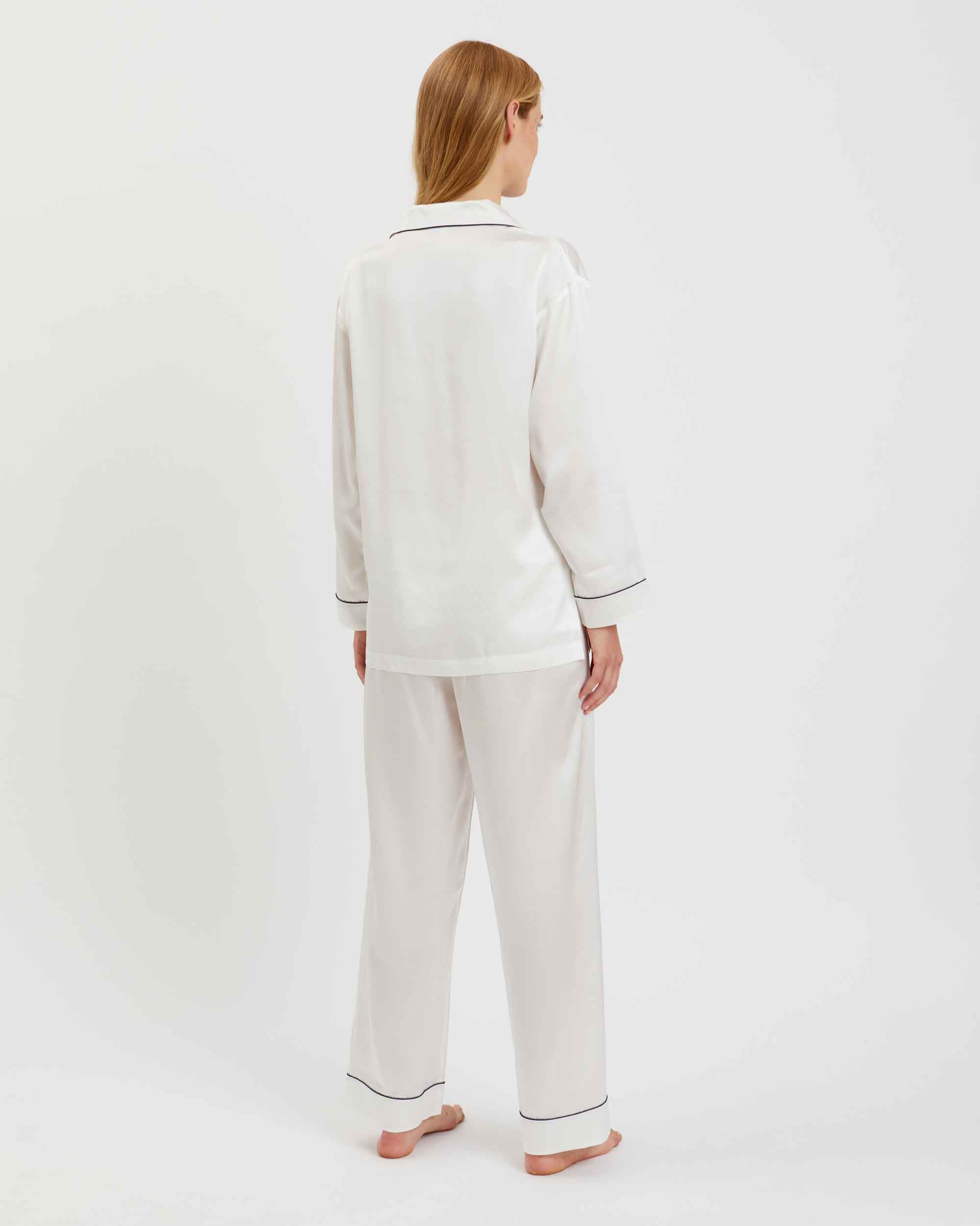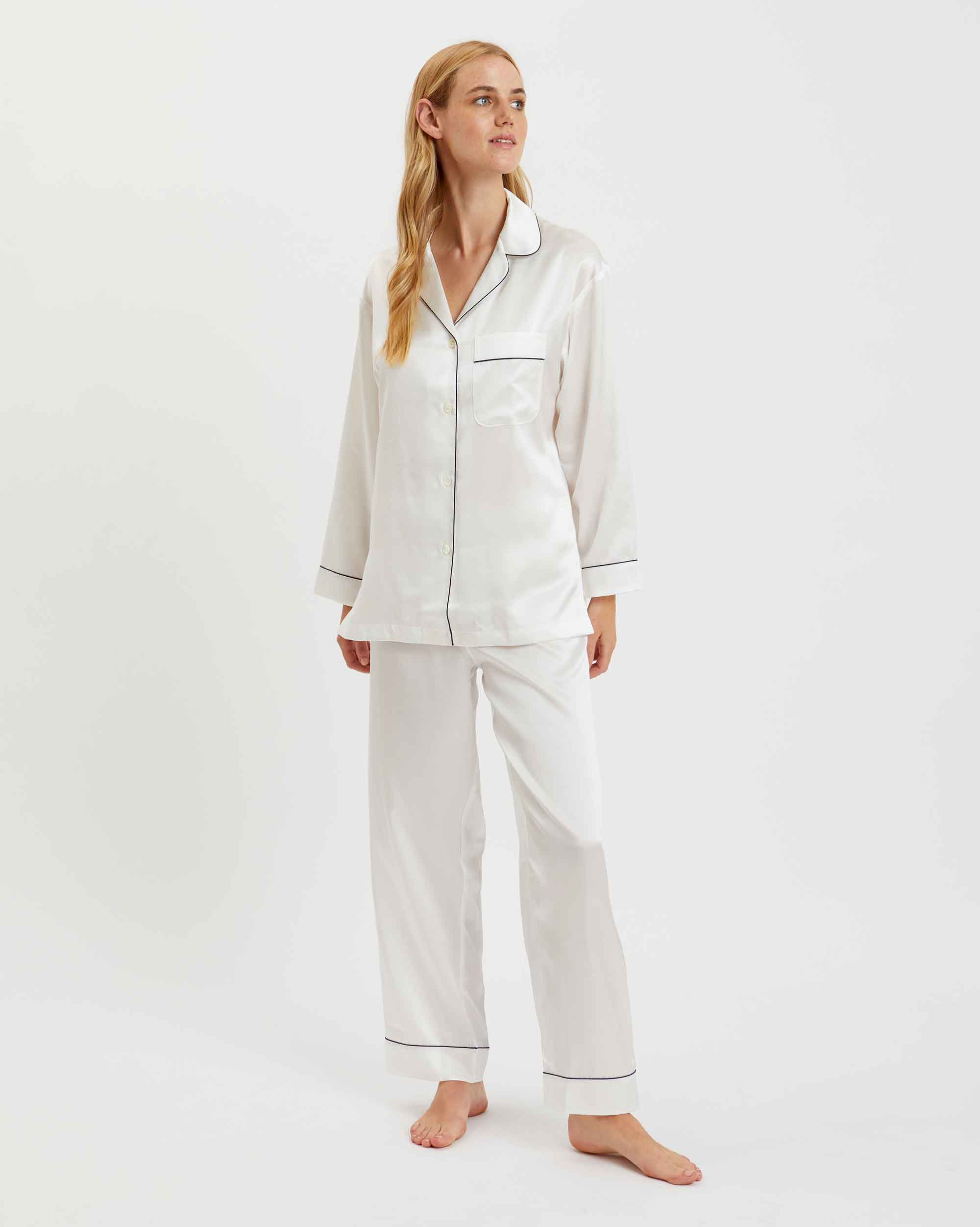Add a touch of quiet luxury to your sleepwear with our women's silk pyjamas. Tailored from a lustrous 19 momme silk satin in a classic ivory, their relaxed fit is elegant and stylish whilst also ensuring they won't feel restrictive when sleeping.