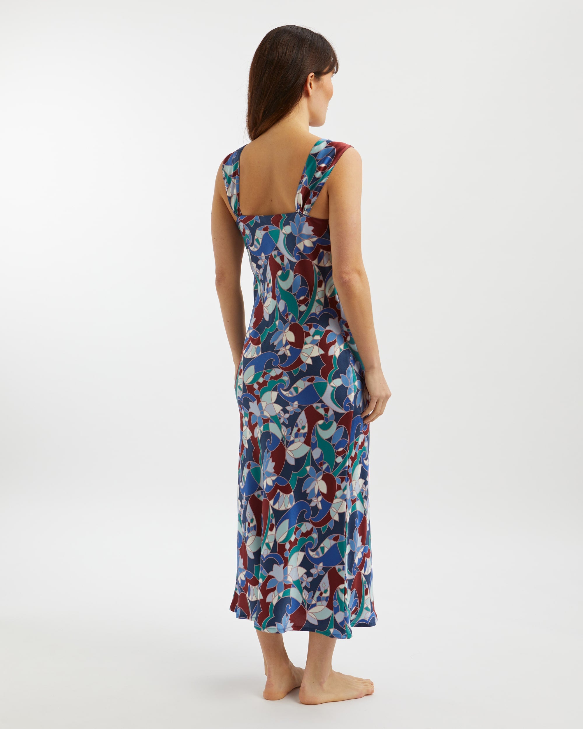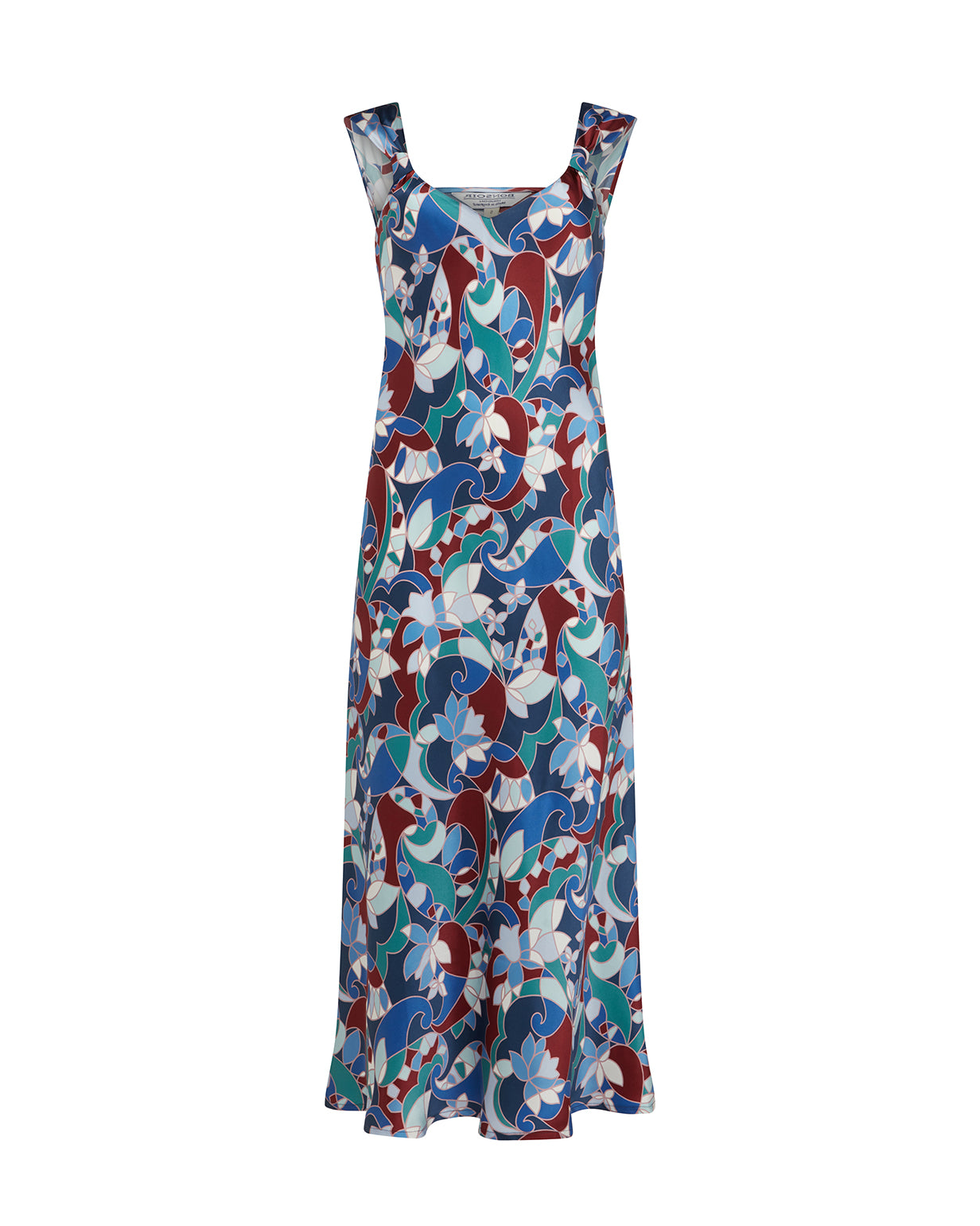 Chow's Paisley is a striking re-imagining of a traditional paisely in rich jewel tones.  Chosen from the House of Liberty collection, this stunning design is printed on a lustrous 16-momme silk satin.  It features generous straps and is cut on the bias to create a graceful drape. A stunning statement piece that transitions from nightwear to evening wear seamlessly.