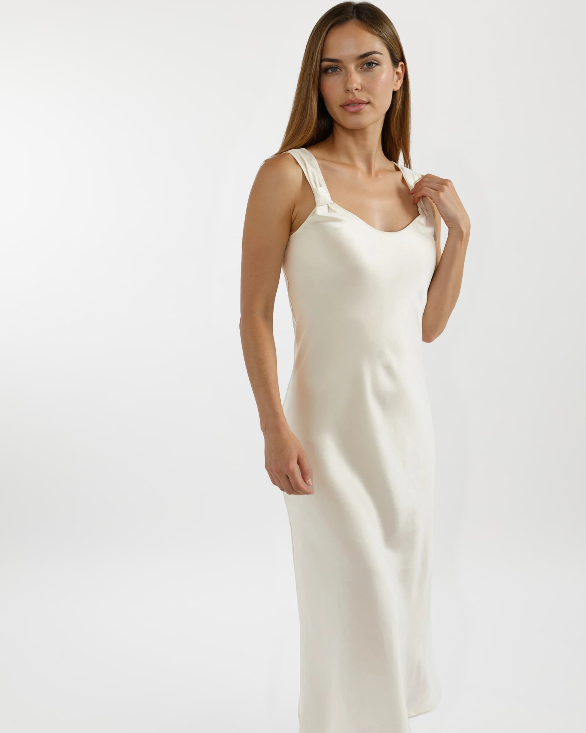 Add a touch of vintage glamour to your nightwear with our silk nightdress in ivory. Made in a lustrous 19 momme silk satin, featuring generous straps, the nightdress is cut on the bias to create a graceful drape. A stunning sleepwear statement.