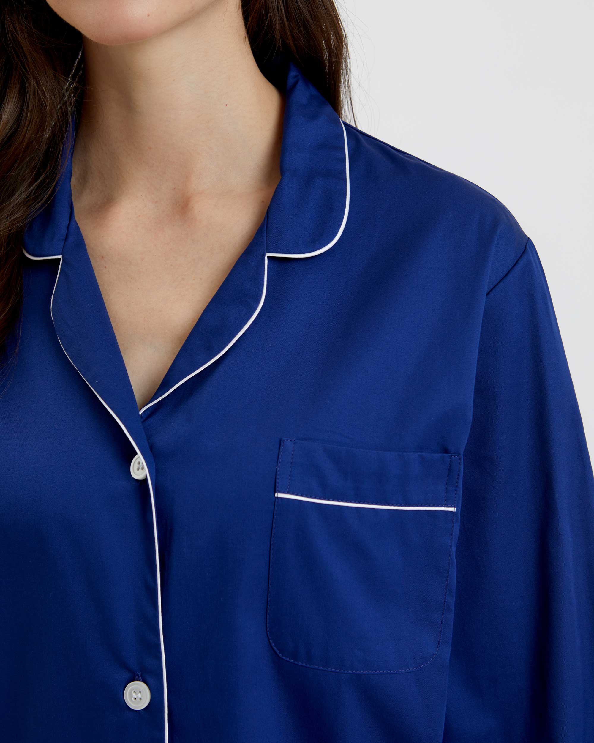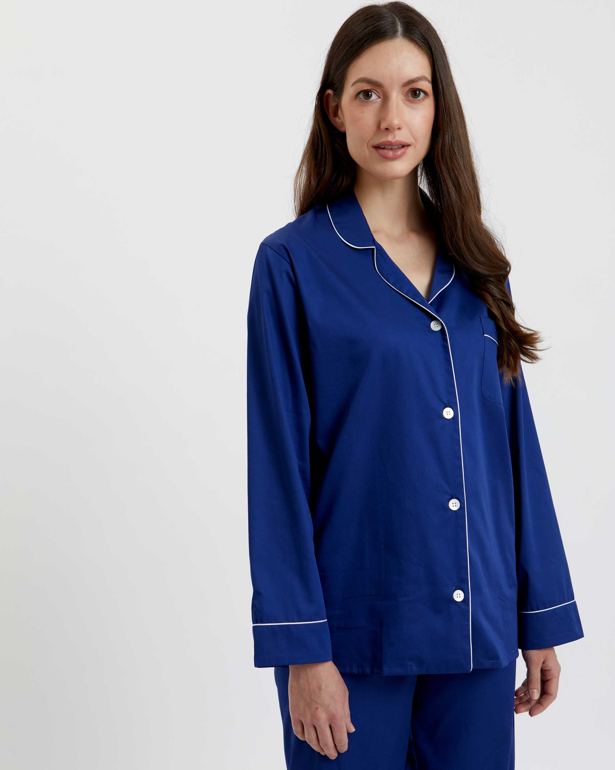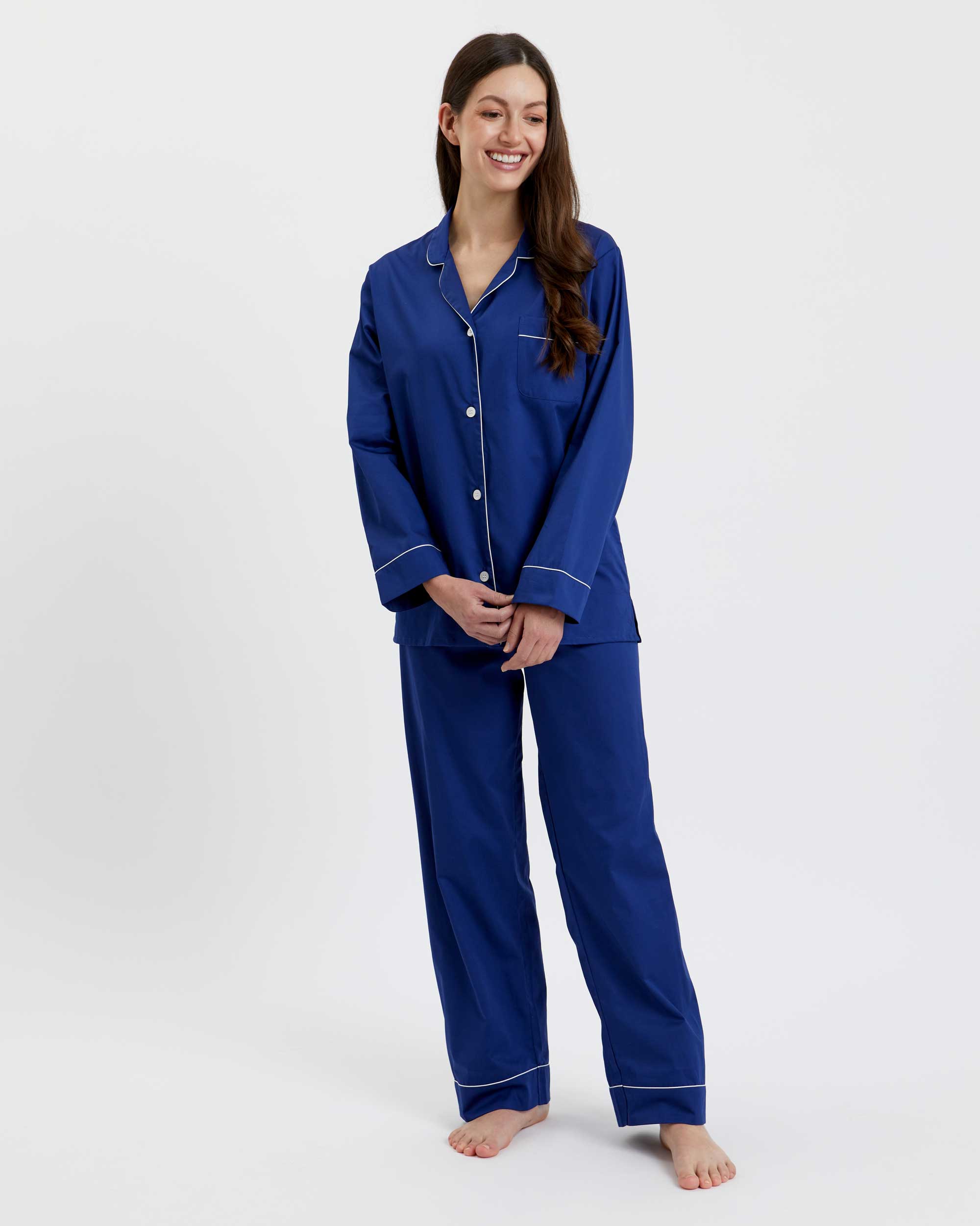 Women's Classic Cotton Pyjamas - Navy Sateen
