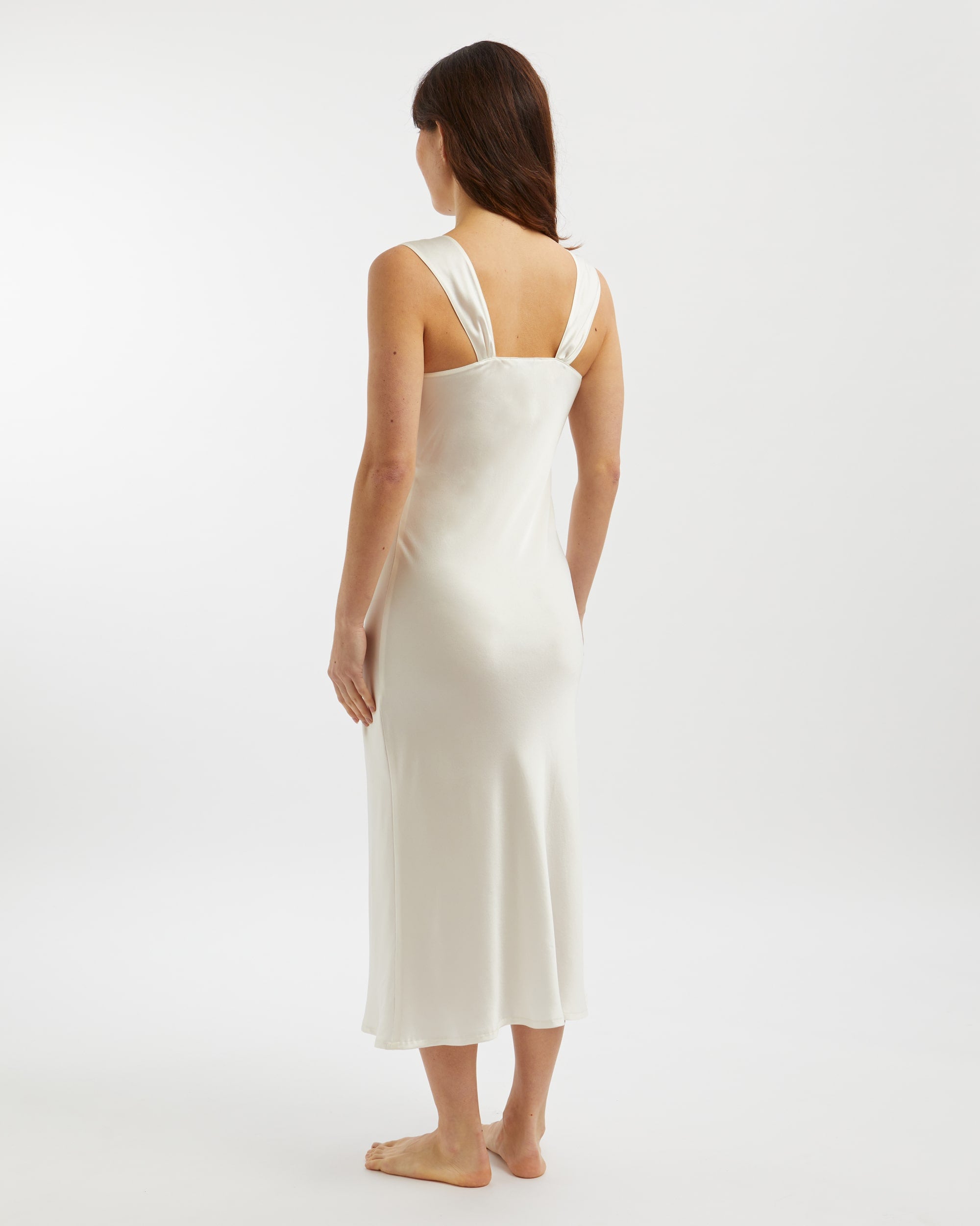 Add a touch of vintage glamour to your nightwear with our silk nightdress in ivory. Made in a lustrous 19 momme silk satin, featuring generous straps, the nightdress is cut on the bias to create a graceful drape. A stunning sleepwear statement.