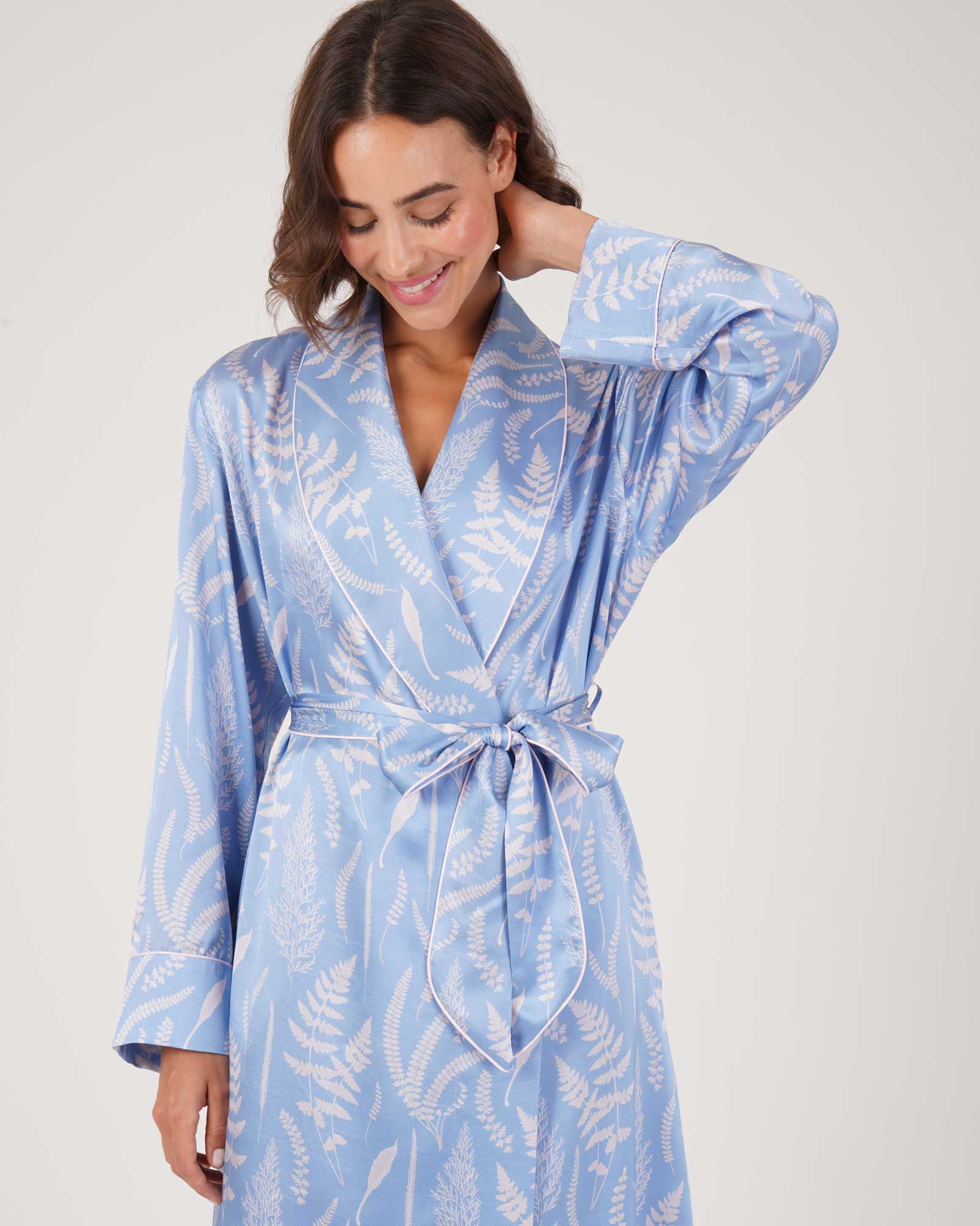 Our sumptuous women's silk dressing gown in dusty pink, is as comfortable as it is feminine. Silk naturally has a beautiful drape, enhanced here by the feminine tailoring and lustrous high-shine satin surface.